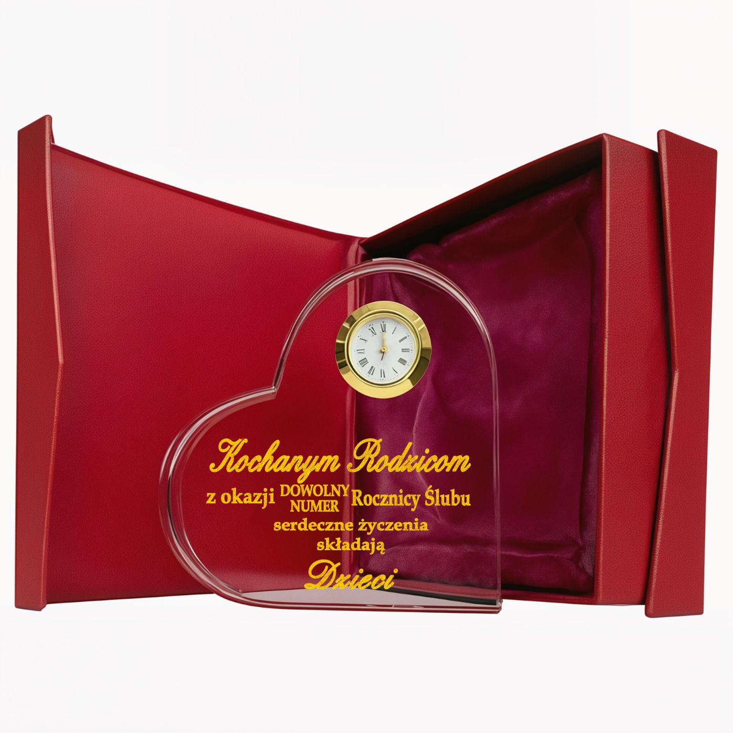 Co na rocznicę ślubu dla PRZYJACIÓŁ? Kryształowe Serce ZEGAR na PREZENT jubileusz ROCZNICA złota srebrna rubinowa szmaragdowa