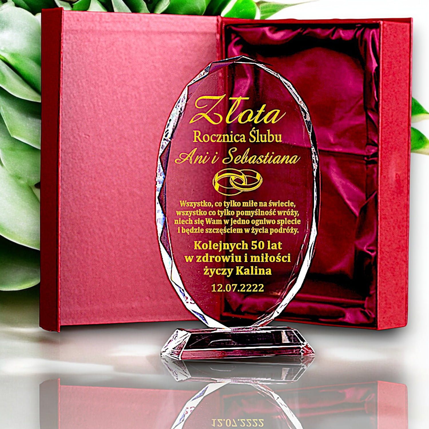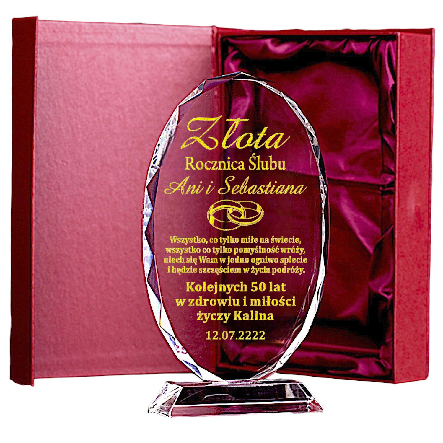 Duży Owalny Prezent Na Złotą Rocznicę Ślubu dla Rodziców Dziadków Znajomych Przyjaciół 1-99 lat ETUI w cenie