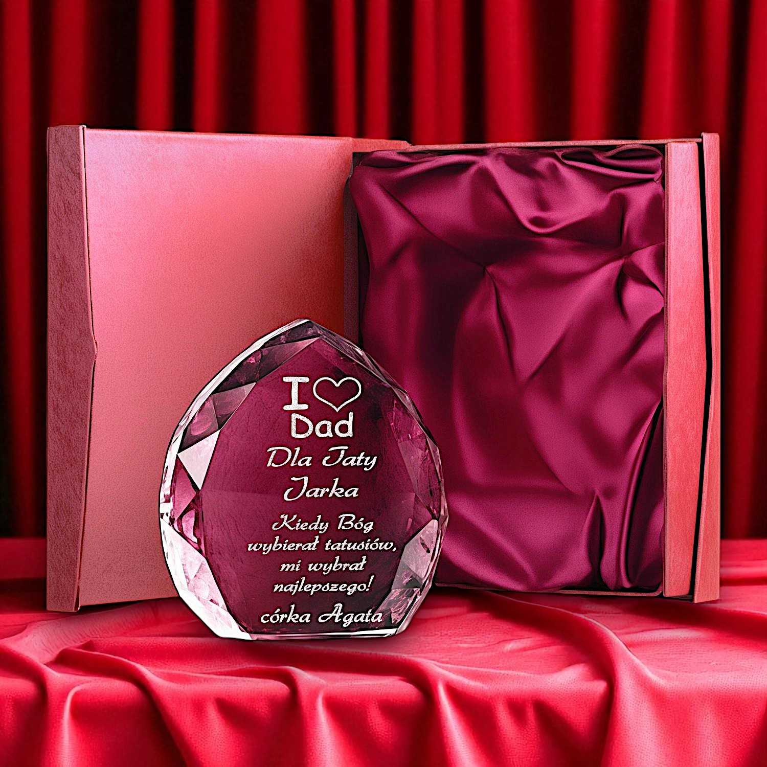 Dzień Ojca Taty - piękny prezent Kochany Tata - dowolne życzenia - ETUI - Piękna kryształowa Statuetka