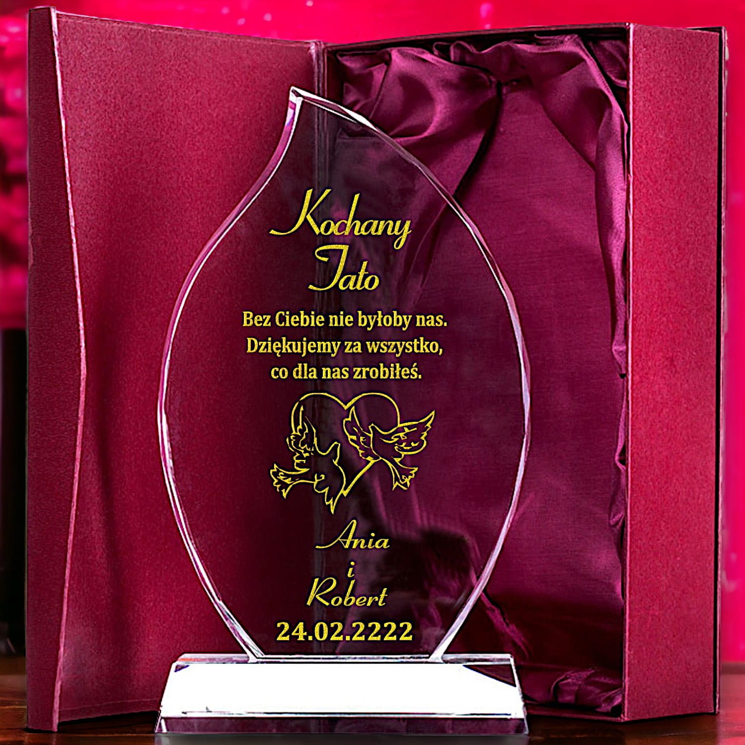 Elegancki Prezent na Lata dla Twoich Rodziców - duży i gruby kryształ 26 cm z dowolną dedykacją i etui prezentowym