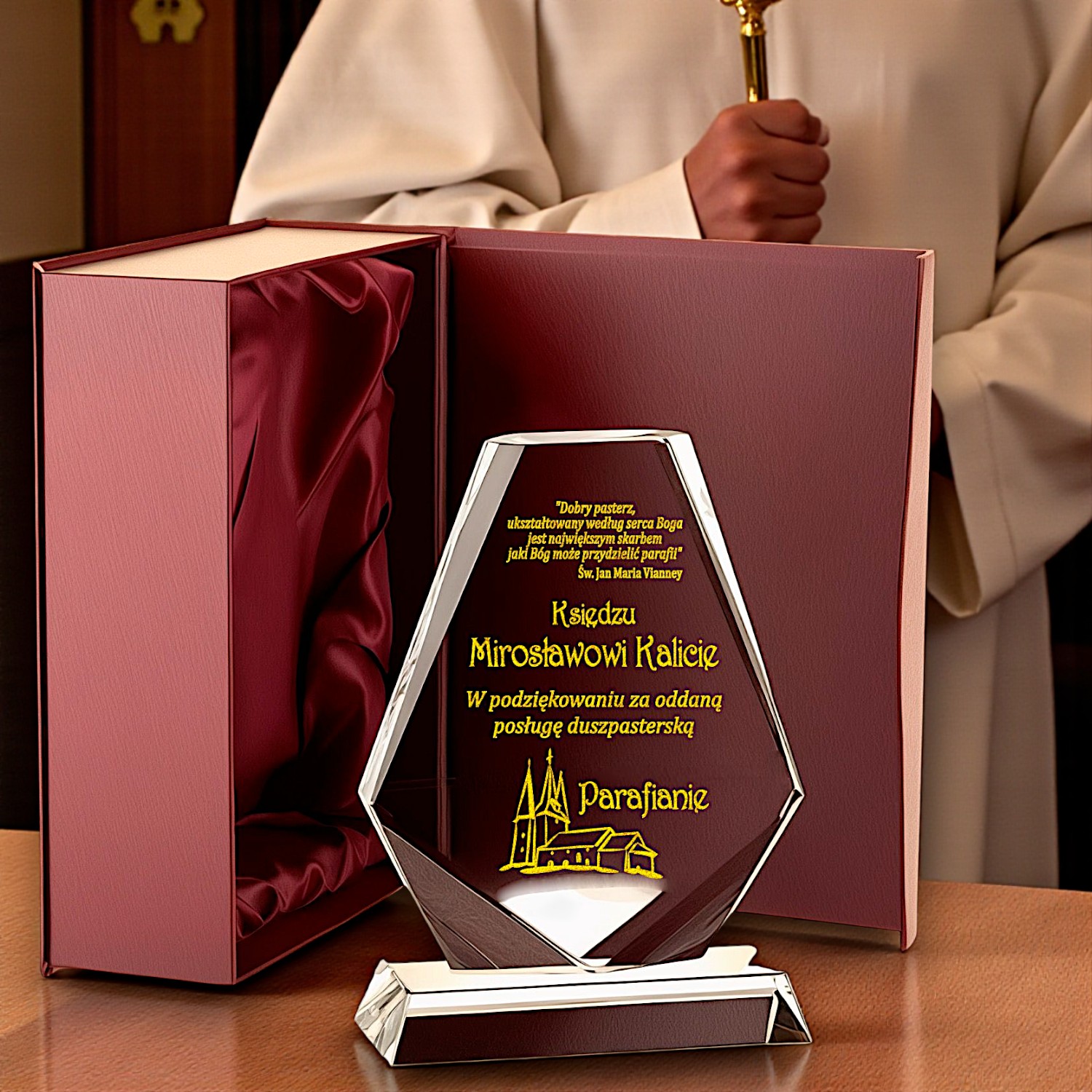 Elegancki prezent dla księdza kapłana na urodziny imieniny rocznicę święceń odejście na emeryturę z parafii lususowy upominek