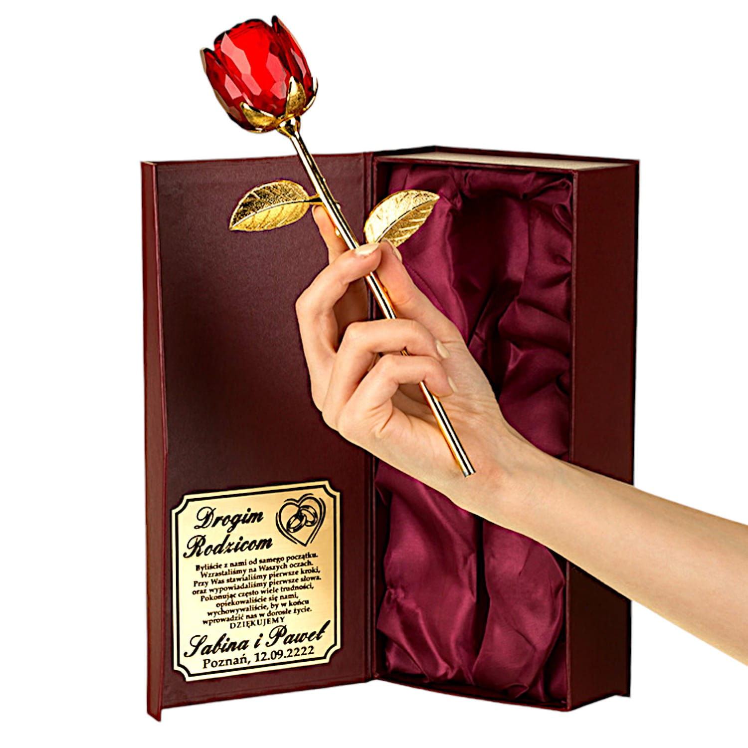 Grawerowane etui stojak kryształowa wieczna róża prezent podziękowanie dla rodziców dziadków chrzestnych Prezent na Walentynki Dzień Kobiet Babci Matki