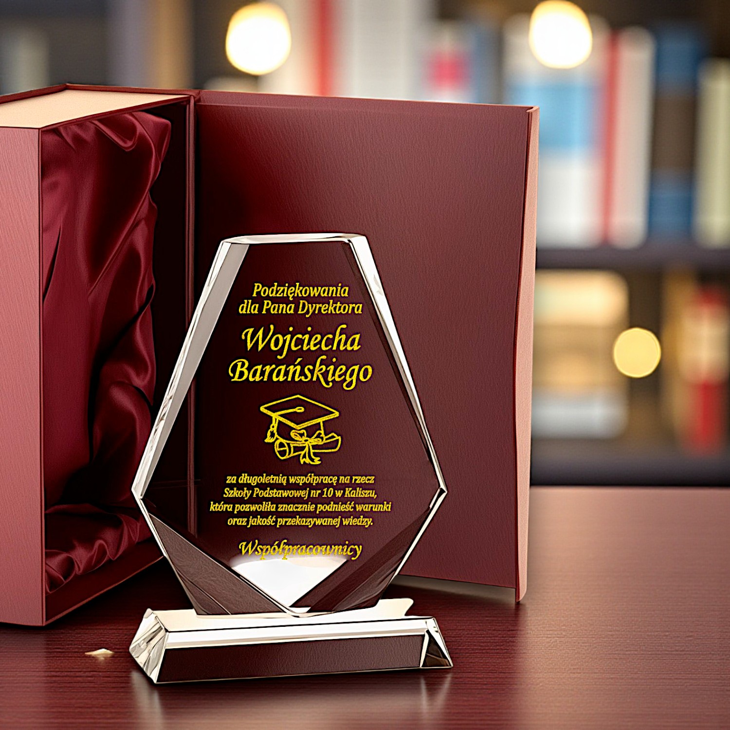 Podziękowanie Prezent Upominek dla Dyrektora Dyrektorki Nauczyciela Nauczycielki Szkoły Uczelni z okazji przejścia na emeryturę - grawerowana tarcza dyplom z etui ozdobnym