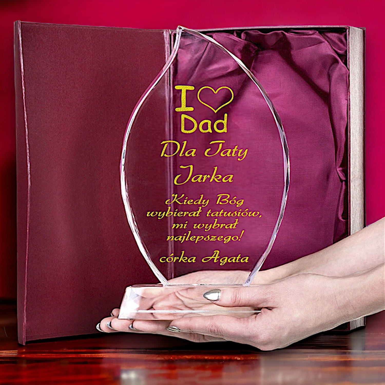 Statuetka nagroda dla Taty na Urodziny Imieniny - 26 cm kryształ z etui i Twoją dedykacją
