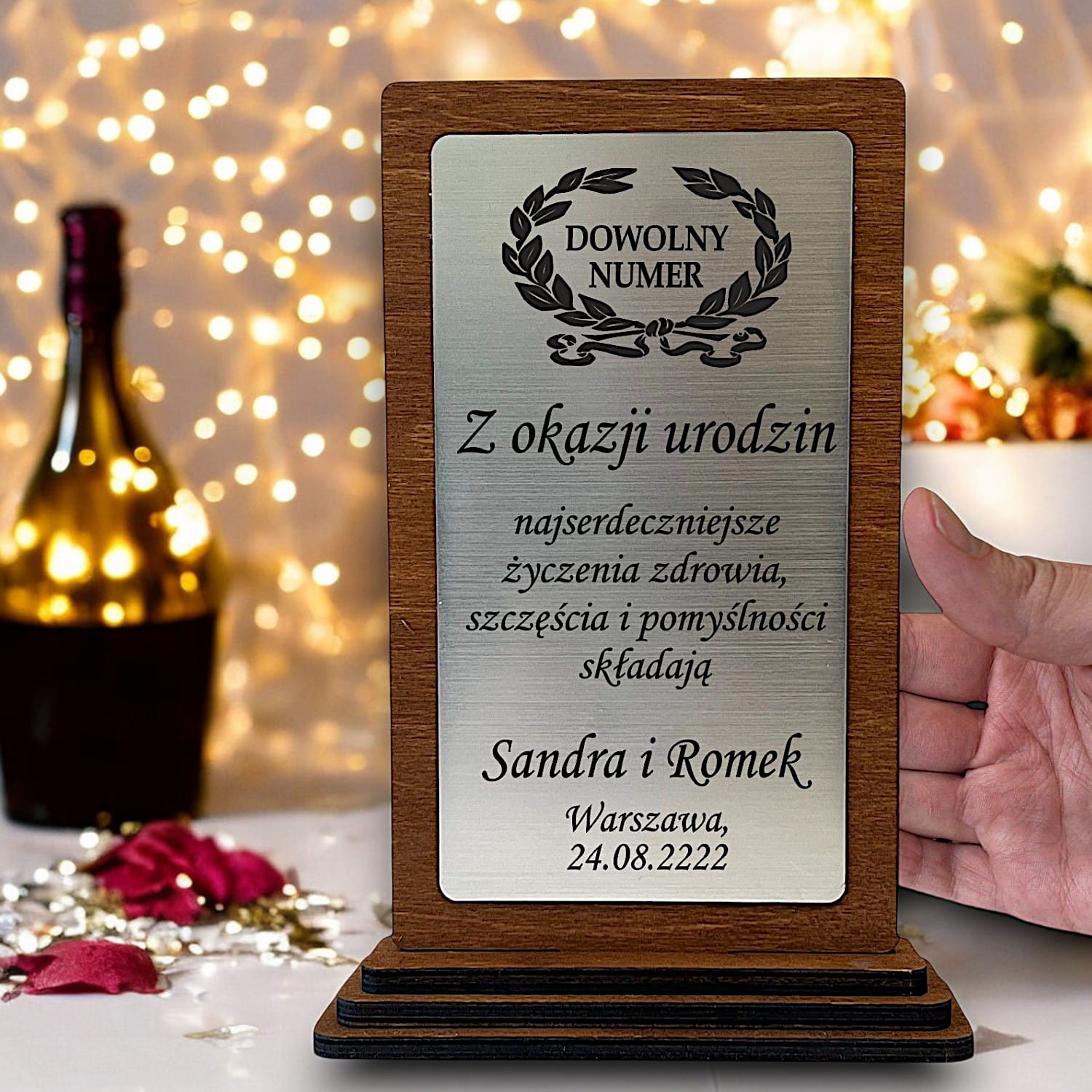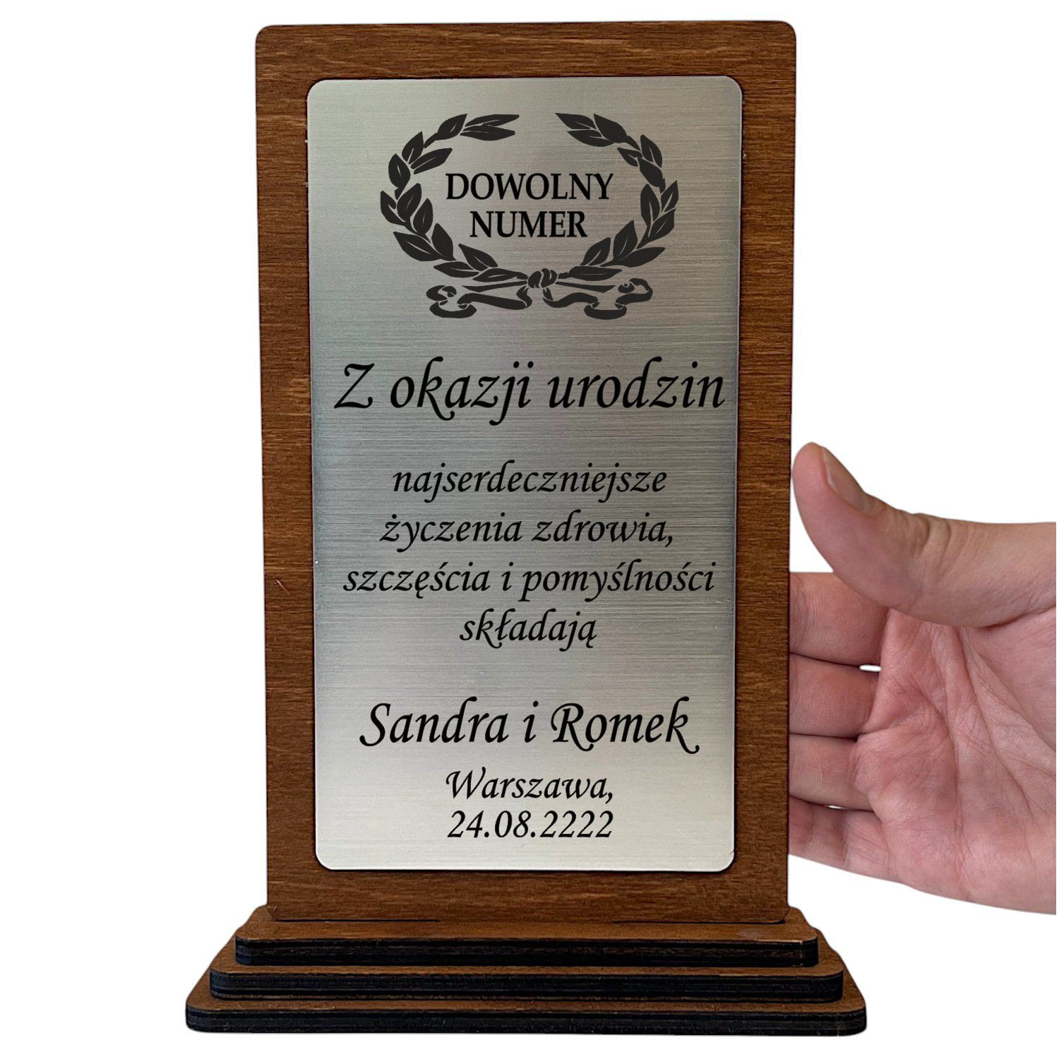 - wysokiej jakości laminat grawerski z Twoją dedykacją